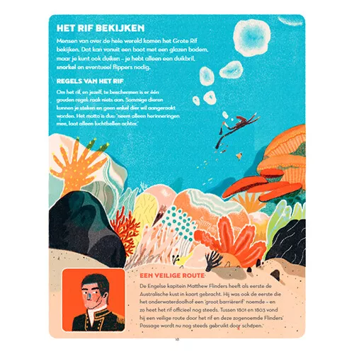 In dit prachtige boek ‘Het grote rif’ van Helen Scales ontdekken kinderen de planten en dieren die in de uitgestrekte onderwaterschatkamer, het Groot Barrièrerif, leven.