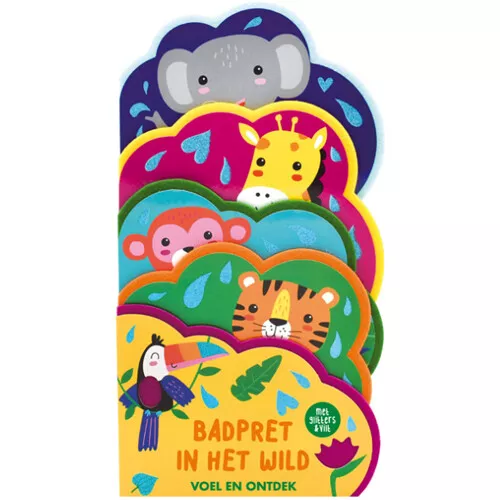 De leuke dieren in dit kijk-en-voelboek ‘Badpret in het wild’ willen iets uitzoeken. Ga je met hen mee?