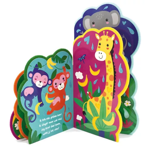 Onderweg ontdek je een heleboel zachte en glinsterende elementen. Het boek is lichtgewicht dus gemakkelijk vast te houden met kleine handjes. Op elke pagina zitten er spannende accenten die je ziet en zelfs kunt voelen.