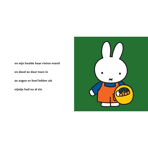 Nijntje laat zien hoe je een moestuintje maakt: eerst de grond omspitten, dan harken, zaadjes zaaien, de plantjes water geven en tot slot de groenten oogsten. Wat zou nijntje in haar tuin hebben gezaaid?