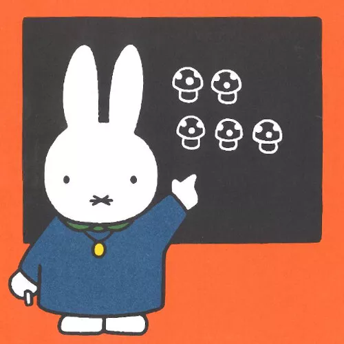 In het prentenboek ‘Nijntje op school’ van Dick Bruna gaat Nijntje, zoals alle konijnen, naar school.