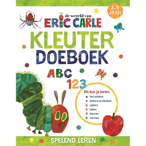 Een vrolijk geïllustreerd ‘Kleuterdoeboek ABC-123’ van de beroemde Eric Carle. In dit handzame doeboek leren jonge kinderen spelenderwijs tellen, kleuren, letters schrijven en nog veel meer!