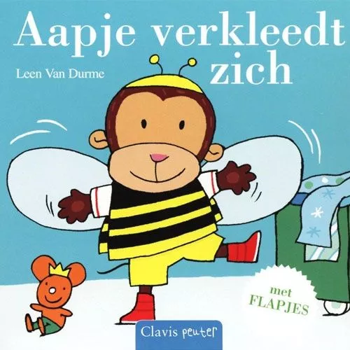 ‘Aapje verkleedt zich’ van Leen van Durme is een kleurrijk peuterboekje met flapjes over een aapje dat zich verkleedt, met het dagelijkse leven van het kind als thema.