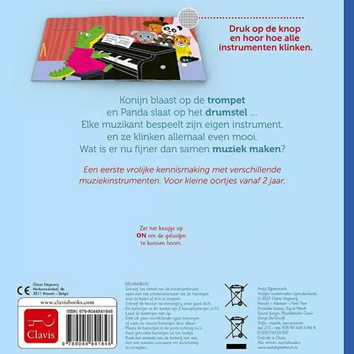 Konijn blaast op een trompet en Panda slaat op het drumstel.. Elk dier bespeelt zijn eigen instrument, en ze klinken allemaal even mooi. Wat is er nu fijner dan samen muziek maken?