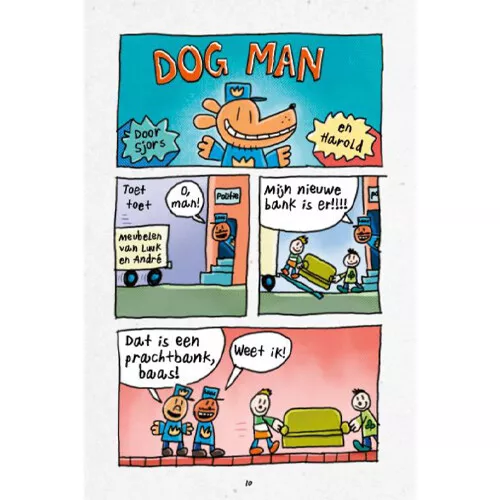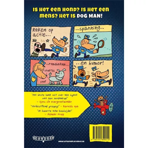 De bestseller uit Amerika van dit moment: ‘Dog Man’ is een hilarische graphic novel van Dav Pilkey vol met bizarre tekeningen en leuke woordgrappen, vertaald door Tjibbe Veldkamp. Lees nu het eerste boek over deze blaffende boevenvanger – half hond, half agent en helemaal politieheld.