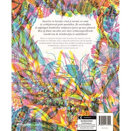 Pak het magische kijkglas erbij, kijk door de rode lens om de insecten te onthullen. Kijk nu door de groene lens om de planten te bewonderen. Met de blauwe lens ontdek je andere kruipende kriebeldiertjes. Wat zul jij ontdekken op dit wereldwijde insectenavontuur?