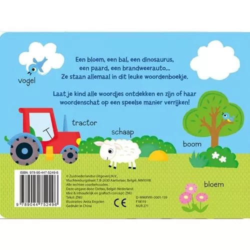 Een bloem, een bal een dinosaurus, een paard, een brandweerauto… Ze staan allemaal in dit woordenboekje.