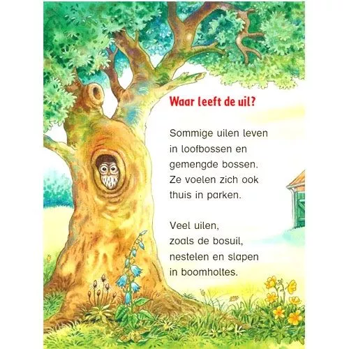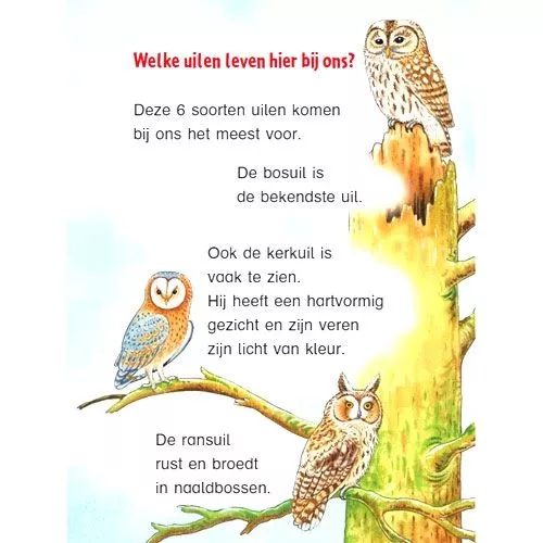 ‘Zo leven de dieren: De uil’ van Uitgeverij Deltas, geschreven Friederun Reichenstetter en geïllustreerd door Hans-Günther Döring voor de beginnende, leergierige lezer. Welke vogel vliegt geruisloos door de nacht, kan heel goed horen en zijn kop bijna helemaal ronddraaien? Natuurlijk, het is de uil! Maar waar leeft de uil? Hoe brengt hij de winter door? En hoe vindt hij een partner?
