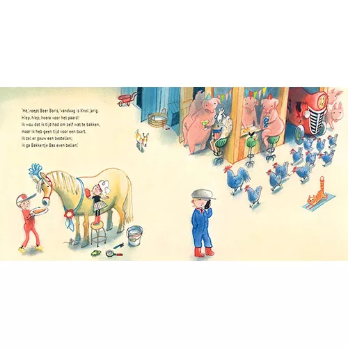 ‘Boer Boris en bakkertje Bas’ is alweer het veertiende deel in de razend populaire serie prentenboeken over Boer Boris van Ted van Lieshout en Philip Hopman. Ook dit deel speelt zich weer af op de boerderij van Boer Boris – maar ook een beetje in de bakkerij van bakkertje Bas.