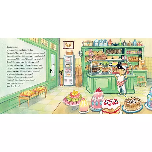 Knol is jarig en dat moet gevierd worden! Boer Boris kan veel zelf, maar een taart bakken, dat laat hij liever aan de echte bakker over. Bakkertje Bas bakt een prachtige paardentaart voor Knol. Hij komt hem zelfs bezorgen. Maar dan krijgt bakkertje Bas pech onderweg en belandt hij met bestelbus en al in de sloot. Daar kan boer Boris gelukkig weer bij helpen! Hij takelt de bakker uit de sloot en dan kan het verjaardagsfeest eindelijk beginnen.