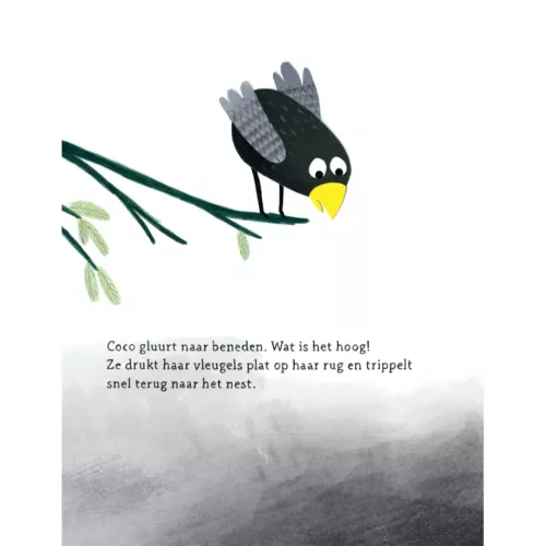 Vandaag is een grote dag. Alle babyvogels gaan voor het eerst vliegen. Alleen Coco durft niet. Wat als ze valt? Of als een kat haar grijpt? Maar als het wél lukt, kan ze samen met haar vriendjes mooie vormen vliegen. Is Coco klaar om haar vleugels uit te slaan?
