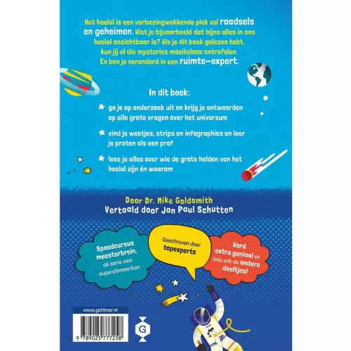 Dat het heelal een verbazingwekkende plek vol raadsels en geheimen is, leer je in het boek ‘Spoedcursus meesterbrein – De geheimen van het universum’ van Mike Goldsmith. Wist je bijvoorbeeld dat bijna alles in ons heelal onzichtbaar is? En dat hoe ver je ook reist, je nooit het einde zult bereiken?