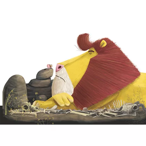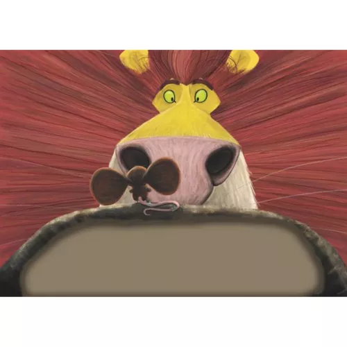 Een klein muisje voelt zich door zijn formaat niet gezien en onbegrepen en kijkt (letterlijk) enorm op tegen de leeuw, die met zijn luide gebrul door iedereen gehoord wordt.