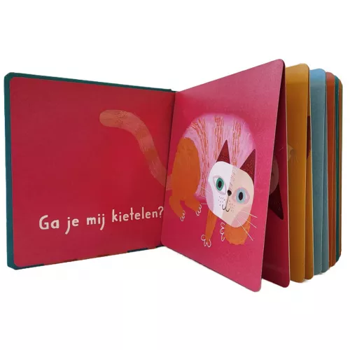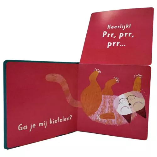 Heb je weleens een beer gekieteld? Of een krokodil? Nee? Probeer het maar in het kinderboek ‘Ga je mij kietelen?’ van Mies van Hout. Dit kartonboek met grote flappen laat dreumesen en peuters een kietelspelletje spelen met kleine en grote dieren, de liefste en de gevaarlijkste bewoners van het beestenrijk. En kijk dan snel onder de flap om te zien hoe de verschillende dieren reageren op kietelen.