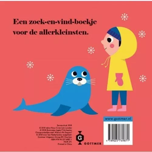 In dit peuterboekje ‘Pinguïn, waar ben je?’ van uitgeverij Gottmer zitten alle zeedieren van de zuidpool achter de flapjes verstopt. Kun jij de zeehond, de meeuw, de walvis en de pinguïn vinden?De flapjes zijn gemaakt van vilt: lekker zacht én stevig dus!