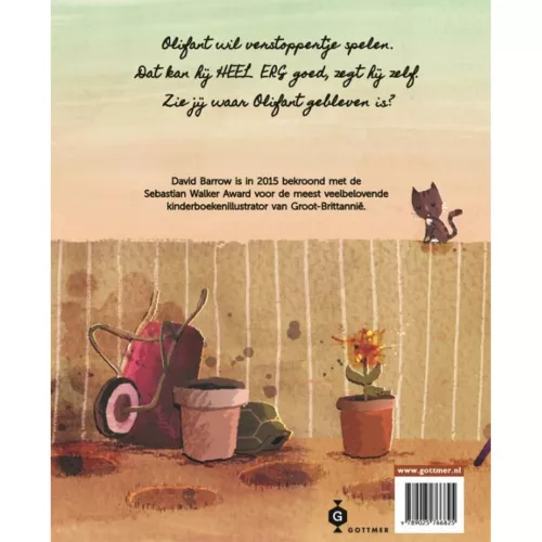 Olifant wil verstoppertje spelen. Dat kan hij héél erg goed, zegt hij zelf. En hij krijgt gelijk! Hoewel de lezer hem duidelijk kan zien zitten, staart het jongetje steeds weer verbaasd in het rond. ‘Heb jij misschien Olifant gezien?’ van uitgeverij Gottmer is een innemend verhaal.