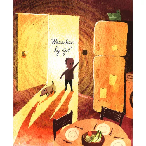 Waar kan Olifant toch gebleven zijn? Het jongetje zoekt en zoekt. Zelfs zijn vader en moeder kijken er zo overheen!