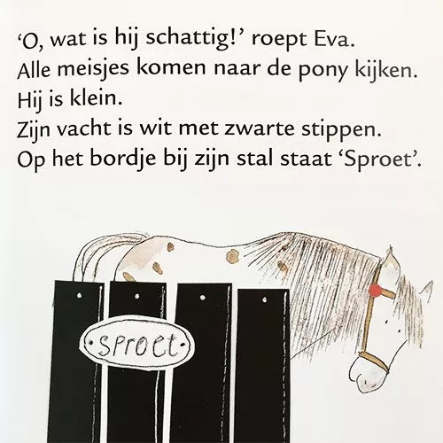 Sproet, de stoutste pony van stal is een leuk paardenverhaal voor eerste lezers met leesniveau AVI M4 tot E4, midden tot eind groep 4.