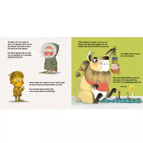 Olivier is een kleine piekeraar. Hij maakt zich over van alles zorgen. Wat als hij de rits van zijn winterjas niet meer open krijgt? Of als hij een kwaadaardige eekhoorn tegenkomt? (Olivier maakt zich heel vaak zorgen om eekhoorns.)