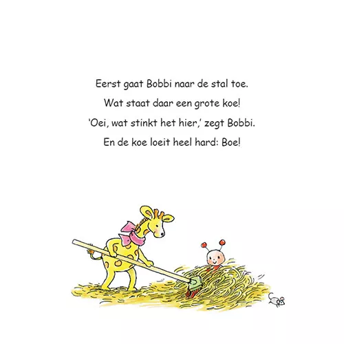 Beertje Bobbi gaan helpen op een echte boerderij in dit peuterboekje ‘Bobbi op de boerderij’ van Monica Maas. Kijk daar rijdt hij op zijn tractor. ‘Net als de boer!’ lacht Bobbi blij. De lieve verhaaltjes uit de populaire serie prentenboeken over Bobbi zijn op rijm geschreven.