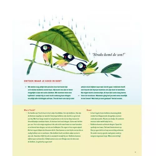 De tien vogels in dit kinderboek geven raad: ontdek waar je goed in bent, wees niet bang, maak plannen, werk samen, houd vol, realiseer je dromen en maak anderen gelukkig. Zo maak jij zelf van elke dag een feest.