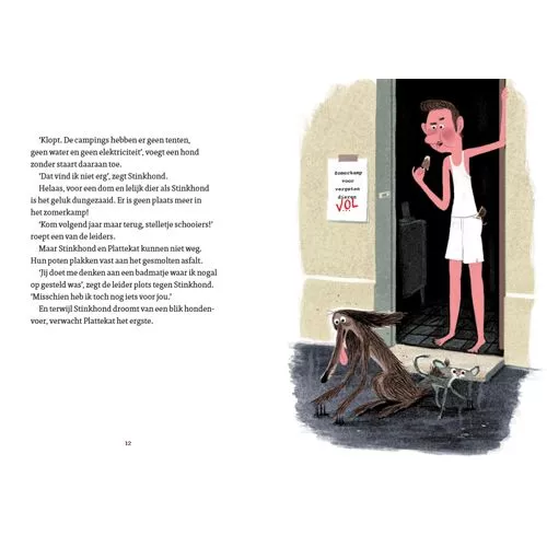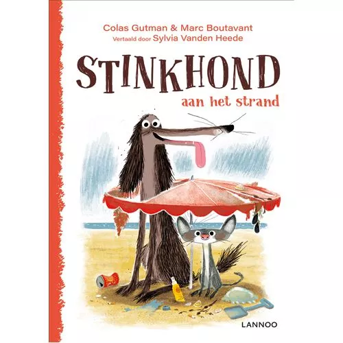 Het kinderboek ‘Stinkhond aan het strand’ van Colas Gutman. Hij is gek en hij stinkt, maar hij heeft een hart van goud!