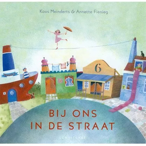In ‘Bij ons in de straat’ stellen Koos Meinderts en Annette Fienieg hun buren aan je voor: Tante Truitje, Cowboy Henkie, Kleine Jantje Hens aan Dek en nog zeven anderen. En op nummer elf? Daar wonen ze zelf. Een feestelijk en onverwoestbaar prentenboek vol vrolijke figuren.