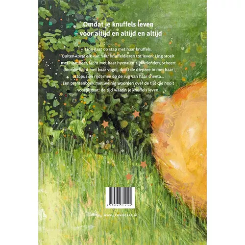 Ling gaat naar buiten, alleen. Hoewel… ze heeft al haar knuffels bij zich. In een prentenboek waarin nauwelijks woorden nodig zijn, gaat de fantasie met Ling aan de haal. Elk van haar knuffeldieren komt tot leven: ze stoeit en knuffelt met haar beer, lacht met haar hyena en zijn vrienden, scheert door de lucht met haar vogel, duikt de diepzee in met haar octopus en rijdt mee op de rug van haar cheeta… Je voelt de wind en het water, de snelheid, de dierenlijven, de vriendschap en de vrijheid.