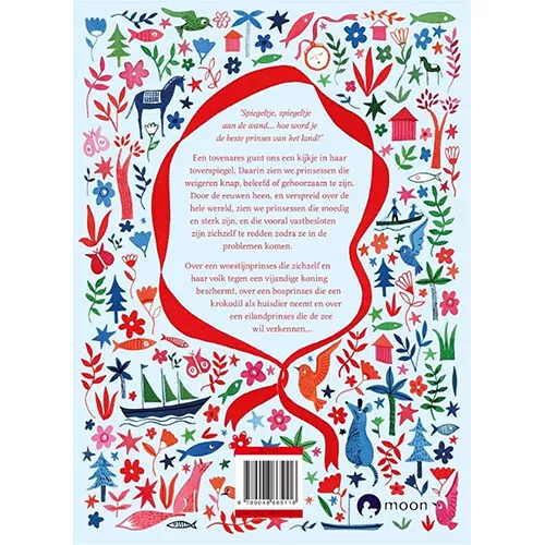 ‘Spiegeltje, spiegeltje aan de wand… hoe word je de beste prinses van het land?’ In het verhalenboek ‘Acht prinsessen en een toverspiegel’ van Natasha Farrani gunt een tovenares ons een kijkje in haar toverspiegel. Daarin zijn prinsessen te zien die weigeren knap, beleefd of gehoorzaam te zijn. Door de eeuwen heen, en verspreid over de hele wereld, zien we prinsessen die moedig en sterk zijn, en die vooral vastbesloten zijn zichzelf te redden als ze in de problemen komen.
