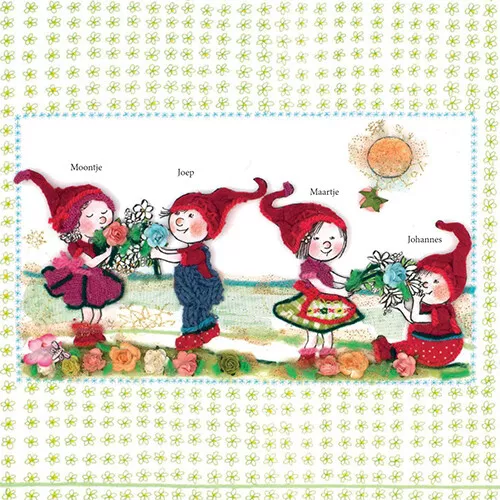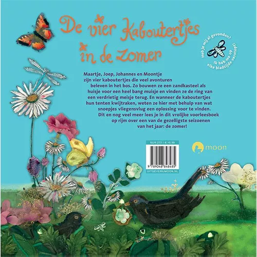 Vier kaboutertjes wonen in het bos. En waar beleef je de seizoenen meer dan daar? Een sfeervol en fijn voorleesboek op rijm vol zandkastelen, kamperen, bijzondere dieren en bloemetjes.