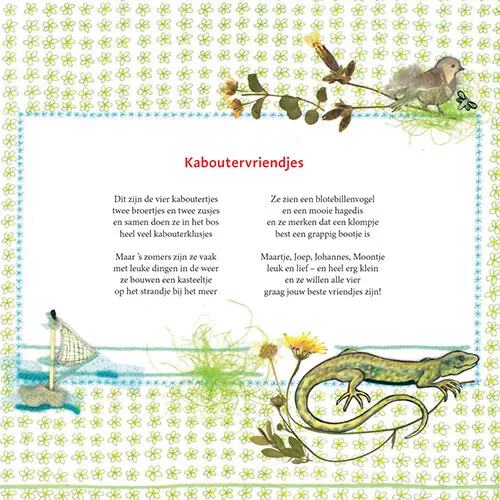 In het kinderboek ‘De vier kaboutertjes in de zomer’ van Marianne Busser en Ron Schröder beleven vier kaboutertjes de mooiste verhalen tijdens de zomer. Een boekje vol gezellige verhalen waar peuters en kleuters van zullen genieten.