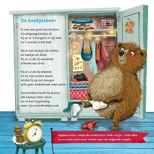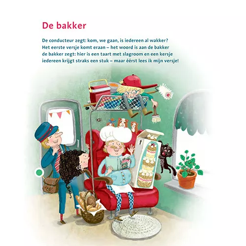 De bakker en de brandweerman en zelfs de koningin. Een kleermaker, een danseres en zelfs een astronaut. Allemaal vertellen ze leuke, gekke en grappige versjes, over een nijlpaard met al zijn spullen op zijn rug bijvoorbeeld, en over een muisje dat wil gaan kamperen en een pauw zonder veren.