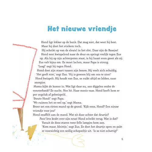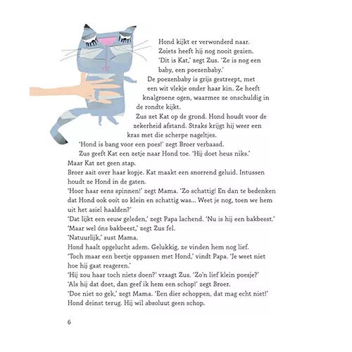 Hond heeft een heerlijk luizenleventje en lieve Baasjes. Maar dan komen de Baasjes op een dag aanzetten met een raar klein pluizenbolletje. Wat is dat? Het is Kat en ze komt ook bij de Baasjes wonen… Als dat maar goed gaat!