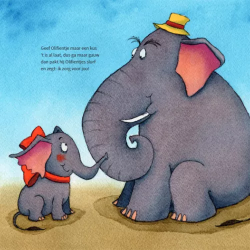 Het kinderboek ‘Olifientje en het verdwenen popje’ van Marianne Busser en Ron Schröder is een kleurrijk prentenboek op rijm over een olifantje met humor.