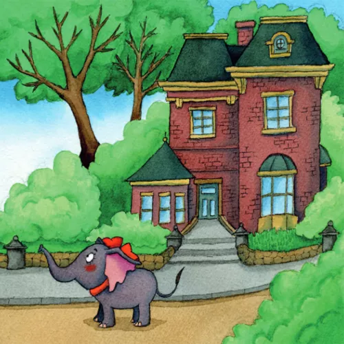 Olifientje gaat lekker spelen met haar poppenhuis en opa Fant duikt fijn in de olifantenkrant.