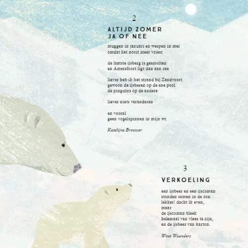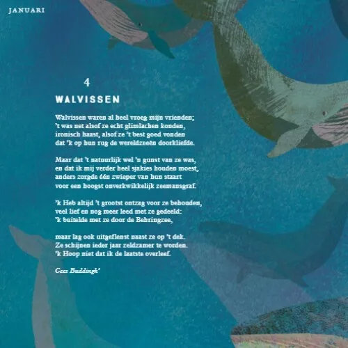 Met gedichten van Hendrik Marsman, Hans Andreus, Ted van Lieshout, Herman Gorter, Jaap Robben, Johanna Kruit, Koos Meinderts, Rutger Kopland, Sjoerd Kuyper, Bette Westera, K. Schippers, Willem Wilmink, Mary Heylema, Ingmar Heytze en vele, vele anderen.