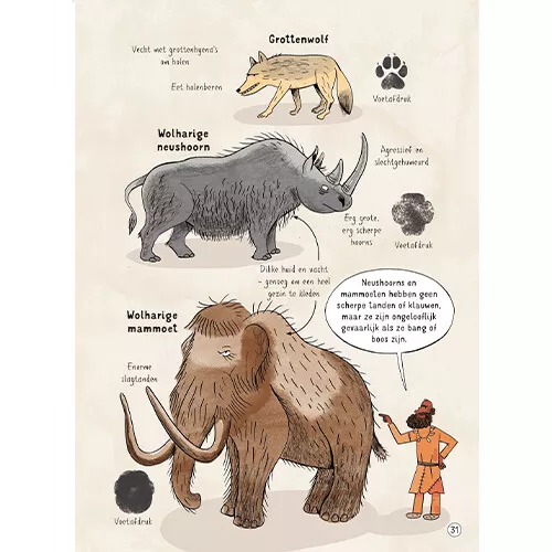 Geschreven in samenwerking met een experimenteel archeoloog: kinderen leren hoe een goede schuilplaats eruitziet en welke eetbare planten werden verzameld.