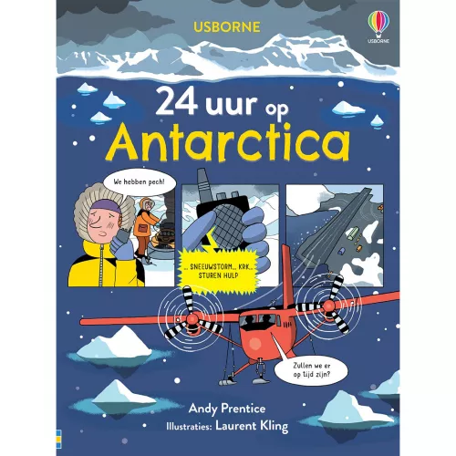 Dit stripboek ’24 uur op Antarctica’ van Andy Prentice gaat over het leven op een van de meest extreme plekken ter wereld. Met illustraties van Laurent Kling. Kinderen leren waarom het leven zo moeilijk is rond de zuidpool, ontdekken het unieke landschap en maken kennis met de dieren die er wonen. Ook komen ze van alles te weten over al het wetenschappelijk onderzoek dat er wordt gedaan.