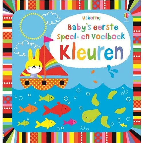 De bladzijden gaan over van geel naar groen of van blauw naar paars. En is niet alleen veel te zien in ‘Baby’s eerste speel- en voelboek’ van uitgeverij Usborne maar ook veel te voelen: een gladde rode appel of een wollig schaapje. En achter flapjes kleine verrassingen.