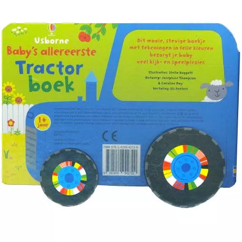 Een stevige kinderboekje met tekeningen in felle kleuren en 4 draaiende wielen, bezorgt de baby veel kijk- en speelplezier.