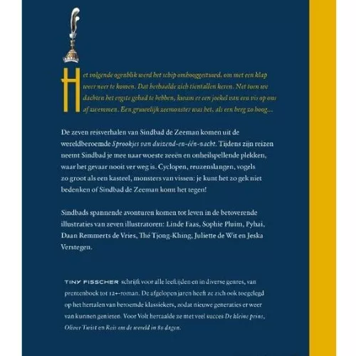 Dit Arabische verhaal wordt door Tiny Fisscher opnieuw verteld voor kinderen. De spannende avonturen van Sindbad de Zeeman komen tot leven in de magische illustraties van zeven illustratoren: Thé Tjong-Khing, Linde Faas, Daan Remmerts de Vries, Jeska Verstegen, Juliette de Wit, Sophie Pluim en Pyhai.