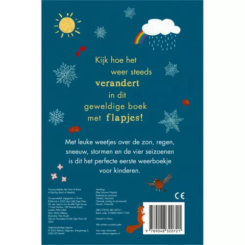 Het peuterboek staat vol leuke weetjes over de zon, regen, sneeuw, stormen en de vier seizoenen. Een vrolijk en leerzaam eerste weerboekje voor kleintjes.