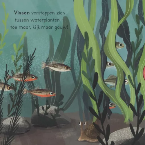 Ontdek het water met dit boek ‘in het water’ van Anne-Kathrin Behl voor kleine ontdekkingsreizigers. Op elke bladzijde zitten schuifjes om te duwen, te trekken en te draaien.